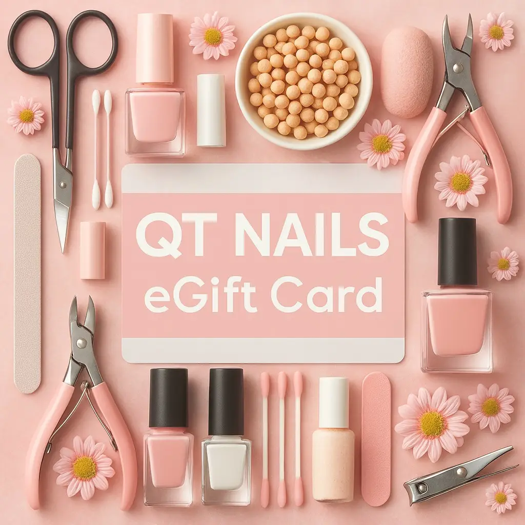 Treat someone special—or yourself—to the gift of relaxation and beauty with a QT Nails eGift Card. Redeemable only at the location where it was purchased, this is the ideal choice for birthdays, holidays, celebrations, or simply a well-deserved moment of pampering.